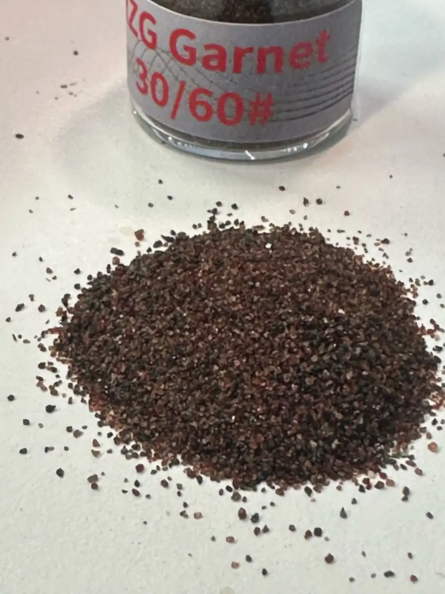 Grosso 30/40 # 250 – 850 µm Garnet angular grosso para manutenção pesada gerando perfil de ancoragem de 75-100 µm (3.0-4.0 mils).