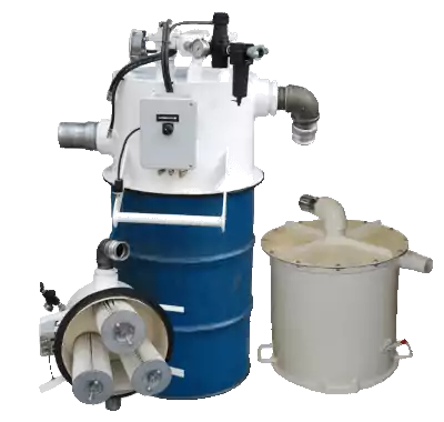 El Sistema Modular de Recuperación de Tambor Schmidt® es una solución cómoda y portátil que se utiliza para mover volúmenes pequeños o grandes de abrasivo para su reciclaje o eliminación. El tambor colector de polvo del sistema separa fácilmente el polvo y los residuos del abrasivo «bueno» utilizable de forma más eficiente que los tamices manuales y es significativamente menos fatigoso para los operadores. Adaptable a cualquier operación de chorreado estacionaria o portátil existente, el sistema modular de recuperación por vacío mejora la producción y minimiza el tiempo de inactividad en su aplicación. Disponible como sistema completo o como componentes individuales.
