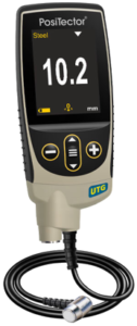 PosiTector UTG da DeFelsko – Medidor ultrassônico de espessura de parede de materiais como aço, plástico e outros, utilizando tecnologia ultrassônica. Ideal para medir os efeitos da corrosão ou erosão em tanques, tubulações ou qualquer estrutura onde o acesso esteja limitado a um lado. Os modelos Thru-Paint de eco múltiplo (UTG M) medem a espessura do metal de uma estrutura pintada sem a necessidade de remover o revestimento.