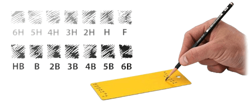 Ao realizar um teste de dureza a lápis, os lápis possuem uma escala de dureza que varia de 6B (mais macio) a 6H (mais duro) e atuam como um indentador quando pressionados sobre a superfície manualmente ou com o auxílio de um carrinho.