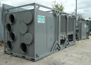 Las unidades de deshumidificación de refrigerante usan refrigerante para enfriar los circuitos por debajo del punto de rocío y, a medida que el aire pasa sobre los circuitos, la humedad se condensa fuera del aire. Este tipo de deshumidificador puede eliminar grandes cantidades de agua del aire en climas cálidos y húmedos y puede usarse para enfriar el interior de tanques, contenedores y recipientes para cumplir con las normas de OSHA.