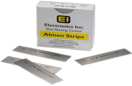 Las tiras Almen son pequeñas probetas que reaccionan a la intensidad del flujo de disparo del abrasivo
